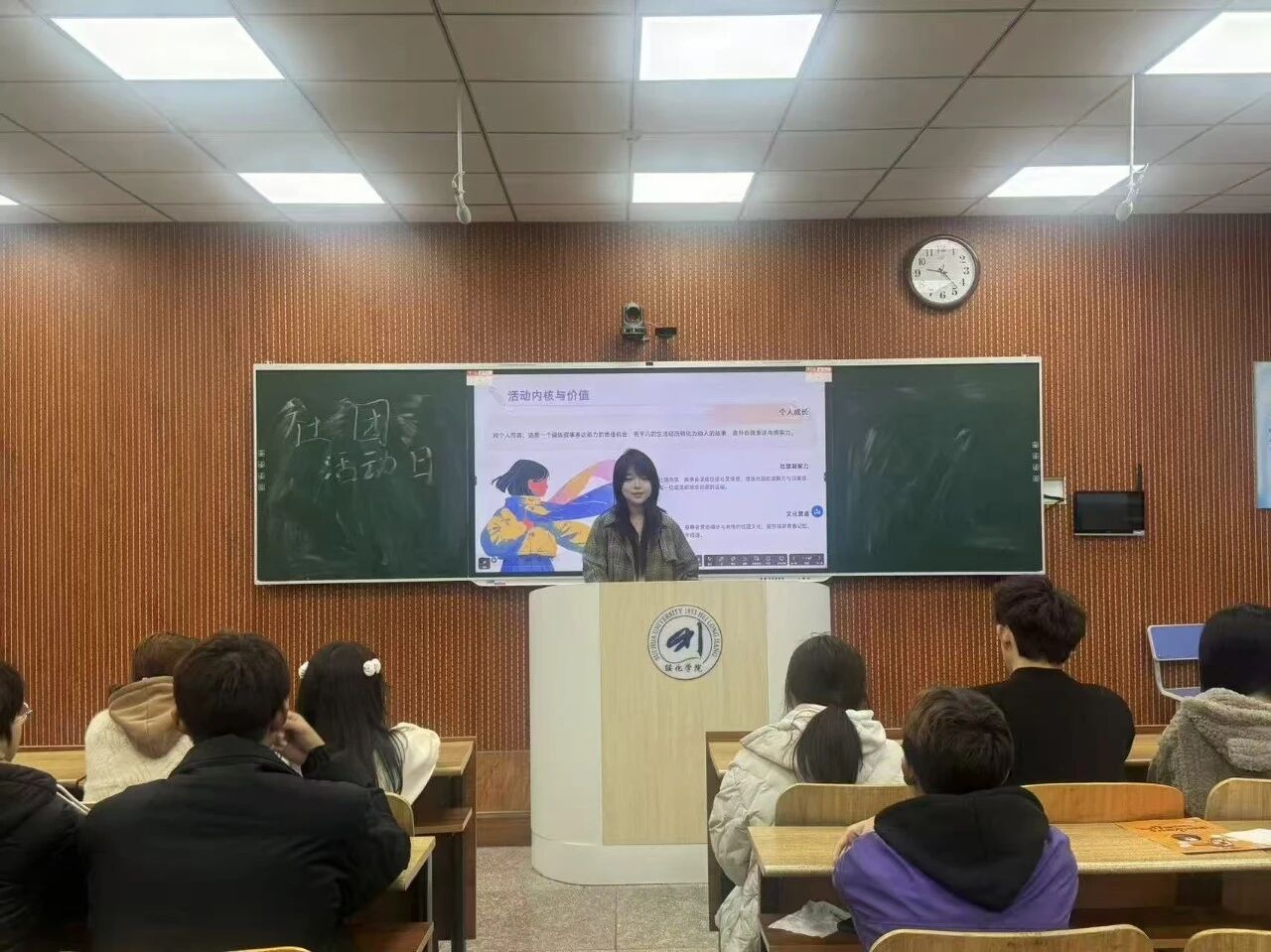艺声口才社在汇文楼313教室举办“言值创造营·校园故事会”活动,围绕“分享真实故事,传递青春温度”的主旨展开交流。活动前,社团通过“故事写作工作坊”帮助社员打磨讲稿;活动现场布置成沙龙环境,社员们依次分享初入校园的迷茫、课堂趣事、室友情谊等青春故事,讲述者声情并茂,听众全神贯注,现场氛围温馨融洽。此次活动提升了社员的口头叙事能力与归属感,也让大家在交流中拉近了距离。