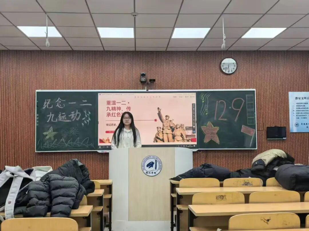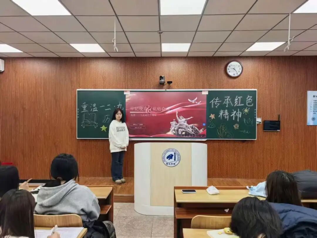 活动中,各班级通过史实分享、主题朗诵等形式,带领同学们重温一二·九运动的烽火岁月。从北平街头的呐喊到民族救亡的洪流,同学们在对历史的回望中,深刻理解了“青年担当、自立自强”的精神内核,爱国情怀在心底凝聚成前行的动力。结合期末考风考纪建设,各班支书组织同学们认真学习考试纪律相关文件,郑重签下诚信承诺书,将红色精神中的责任与坚守转化为“诚信备考、拒绝舞弊”的行动自觉。