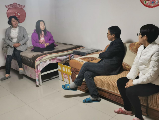 在2019级汉语言文学三班刘佳欣同学的家里,高院长与刘佳欣的辅导员张岩和刘佳欣同学的母亲亲切交谈,从她的基本家庭状况聊到她的治疗经历从她现在的身体状况聊到学习情况。刘佳欣同学在校是一位品学兼优的好学生,在家也是一位孝顺的好女儿。作为汉语言文学专业的学生,高院长对刘佳欣同学提出了几点学习上的期望,同时希望她尽量多多练习一下写作。