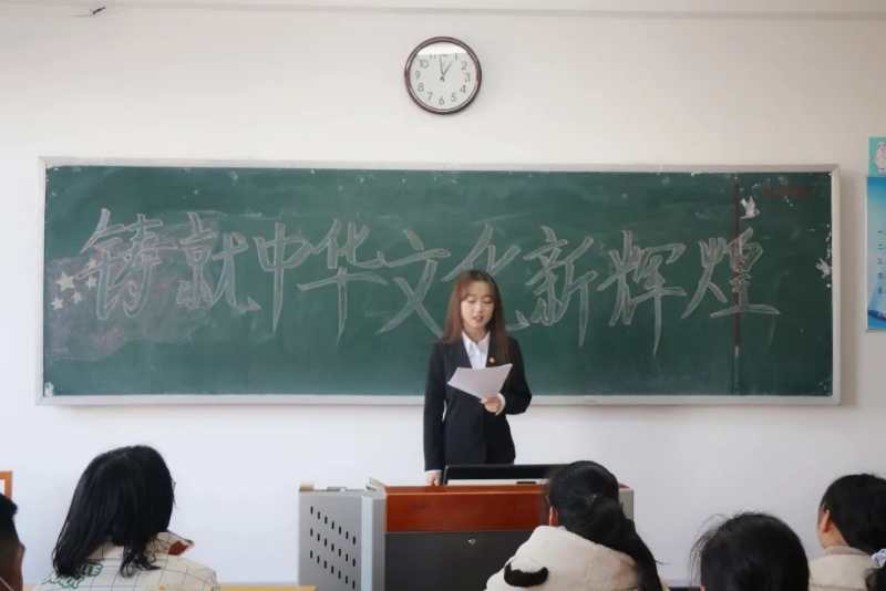 在宣讲中,王玥彤为同学们系统地阐述了党的十九大以来,以习近平总书记为核心的党中央在加强社会主义文化建设方面所作出的一系列科学论述和重要举措,详细介绍了中华文化的独特优势、坚持正确文化方向的重要性和提高国家文化软实力的紧迫性,让大家对《习近平谈治国理政》中“铸就中华文化辉煌”的部分有了更清晰的认识。通过她的宣讲,同学们深刻领会到“中华民族面对世界百年未有之大变局,要全面建设社会主义现代化国家、实现中华民族伟大复兴,就必须大力发展社会主义先进文化,不断铸就中华文化新辉煌”的重要论断。