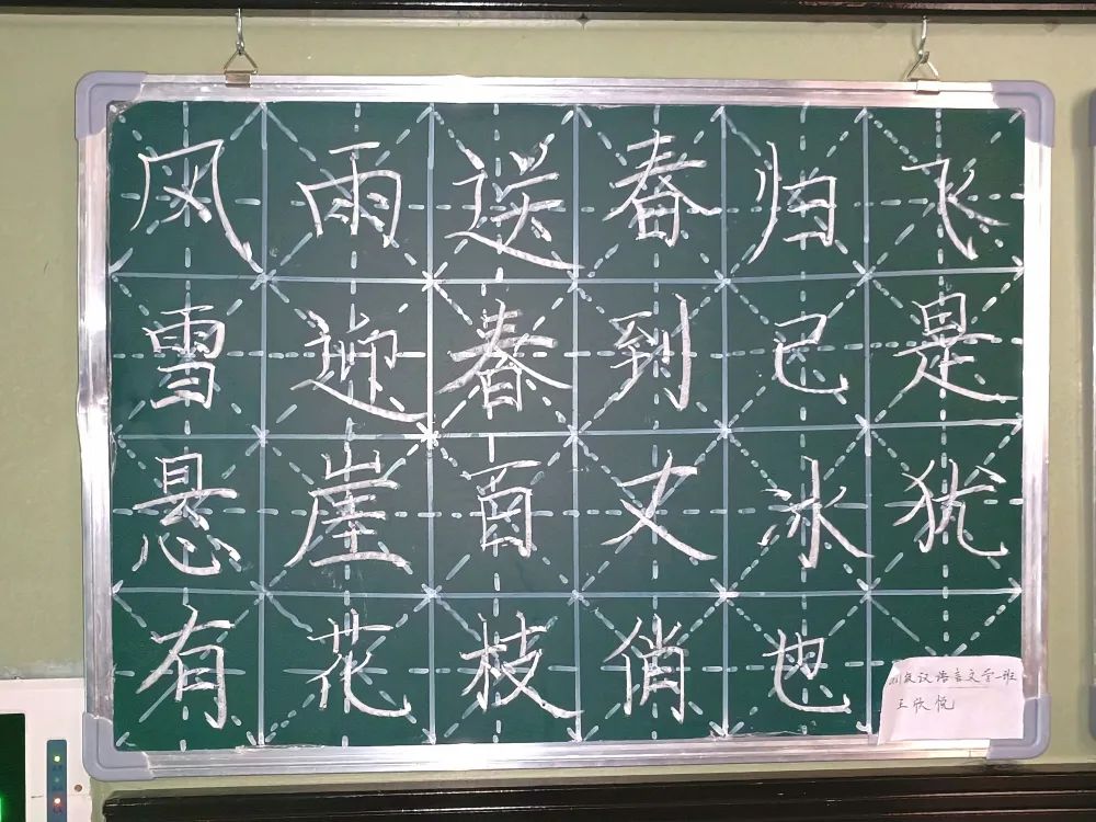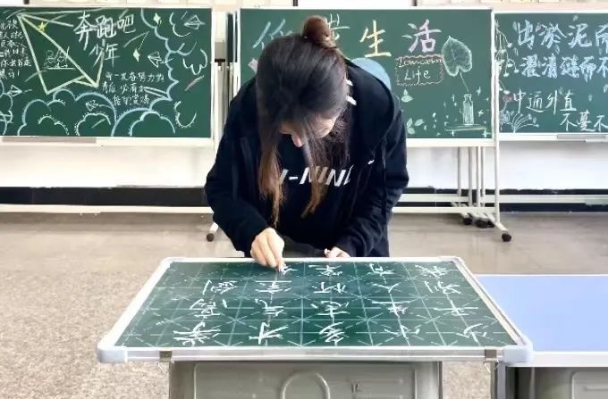 “育人必先律己,教书必先强己。”教师基本功是教师从事教学工作必须具备的最根本的职业技能,是教师完成教学任务的必备素质之一,粉笔字更是体现教师基本功水平的标尺之一。为了提高师范生的职业技能,促进学生专业素养提升,鼓励培育应用型师范人才,Beat365官网汉语言文学专业师范类学生每周开展黑板字职业技能训练,并挂在教室走廊展览。