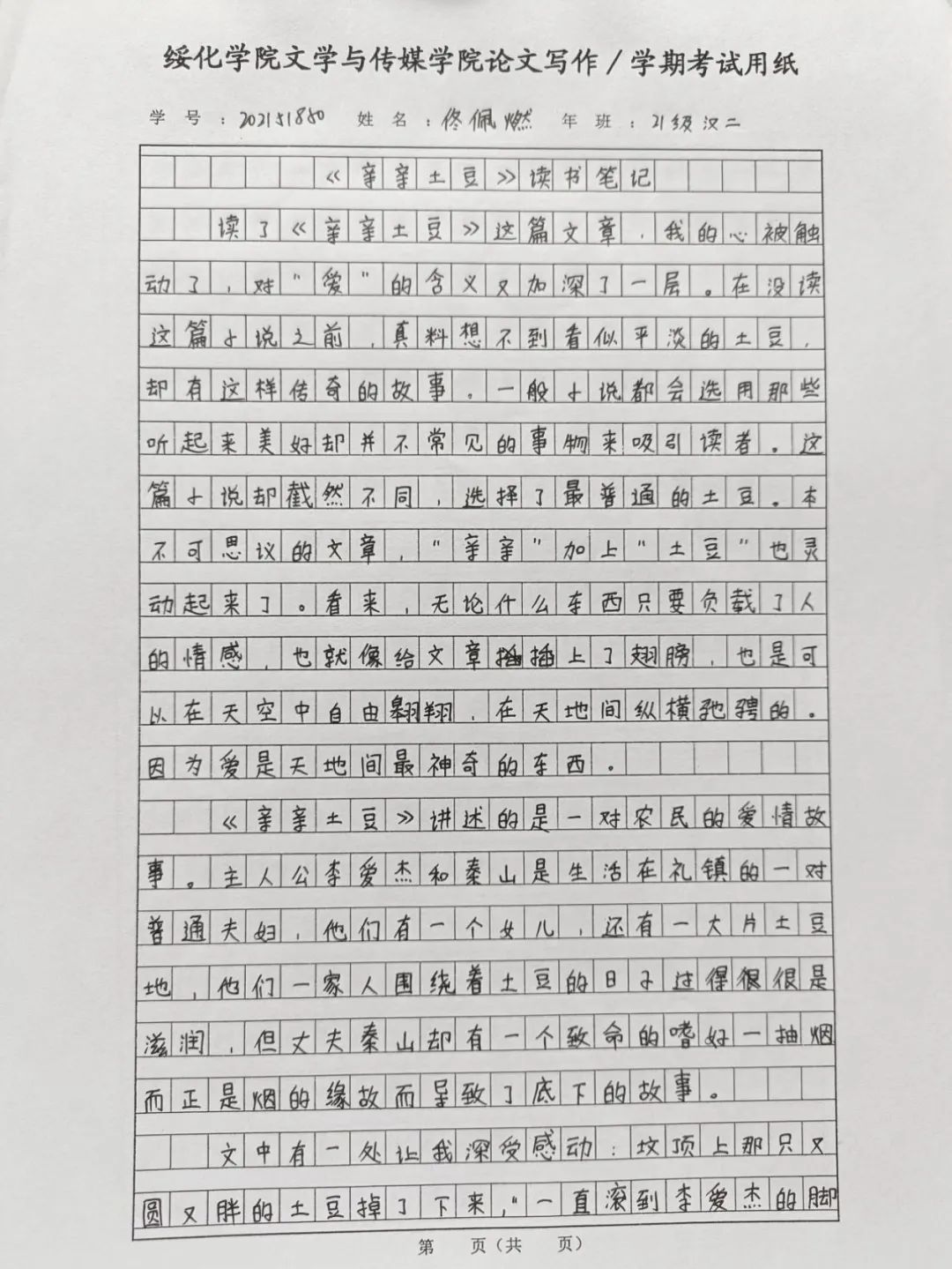 2021级汉语言文学二班佟佩燃