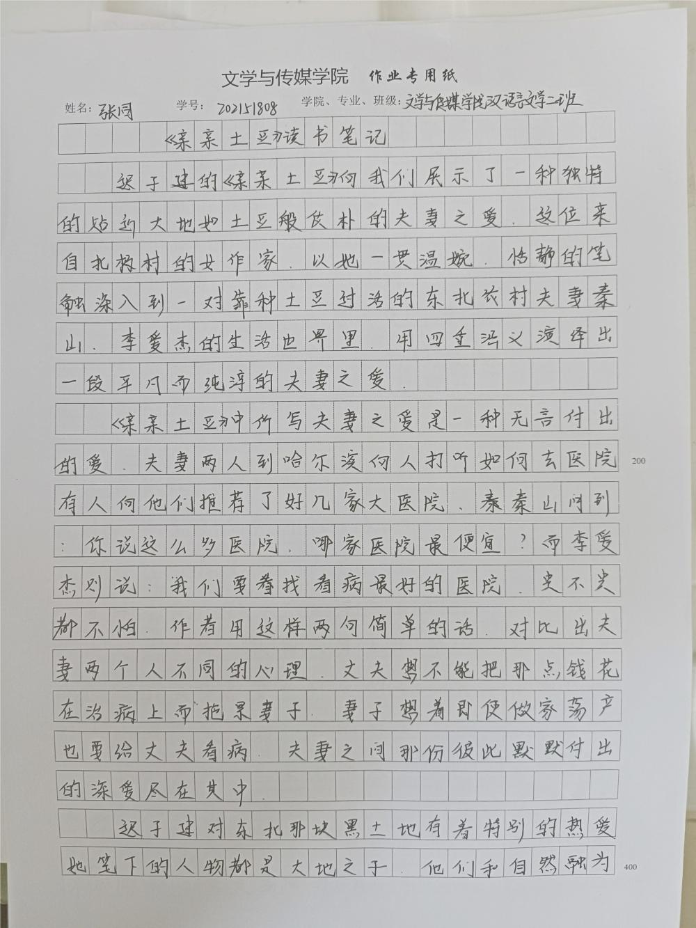 2021级汉语言文学二班张同