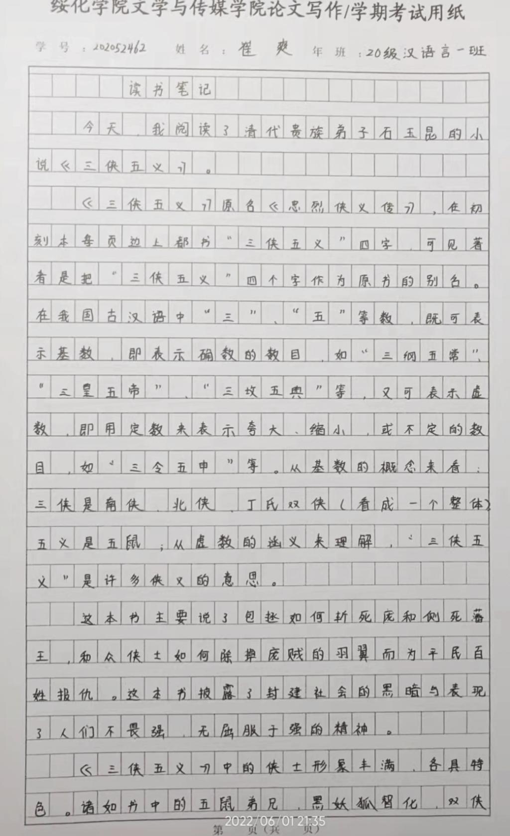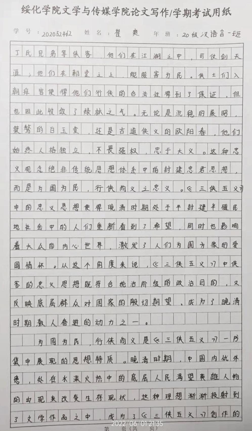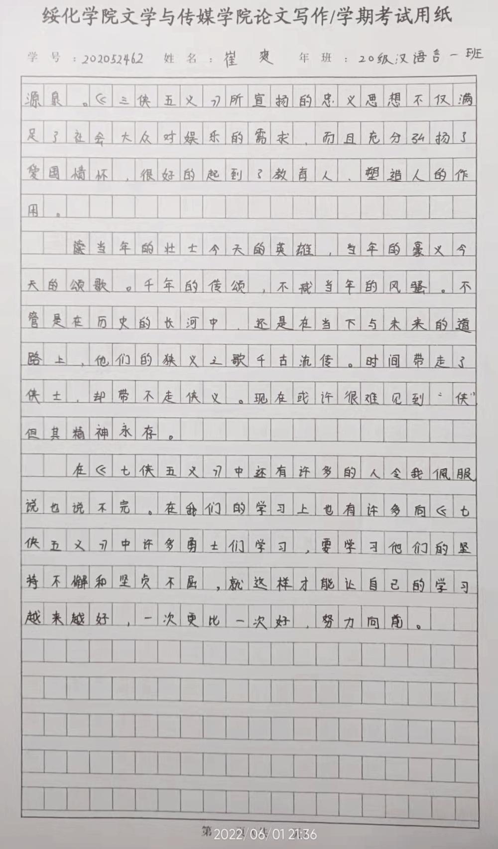 2020级汉语言文学一班崔爽