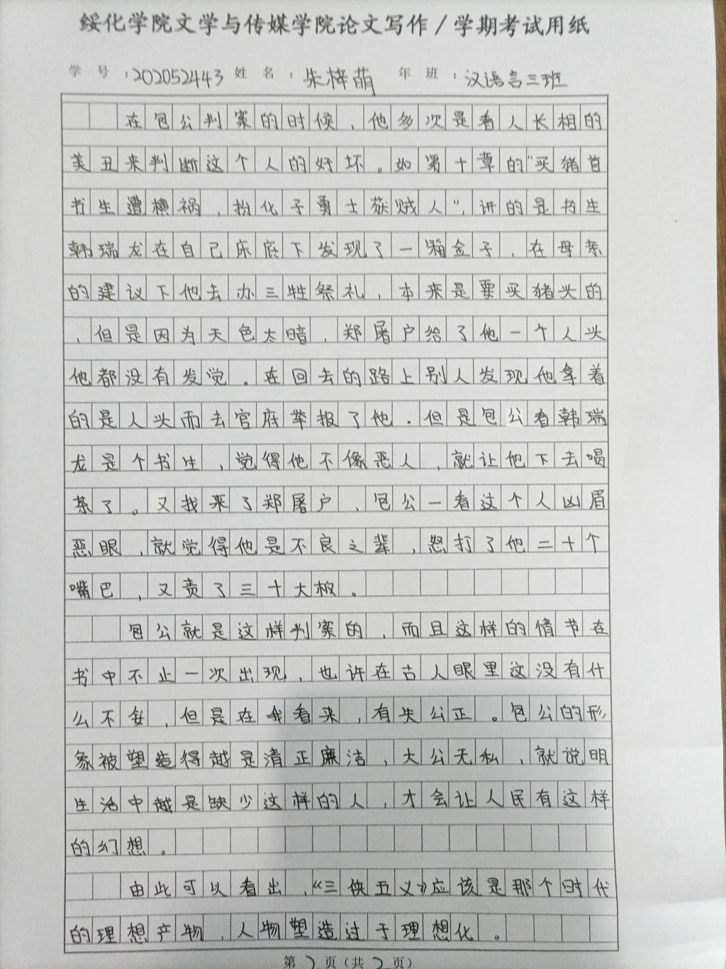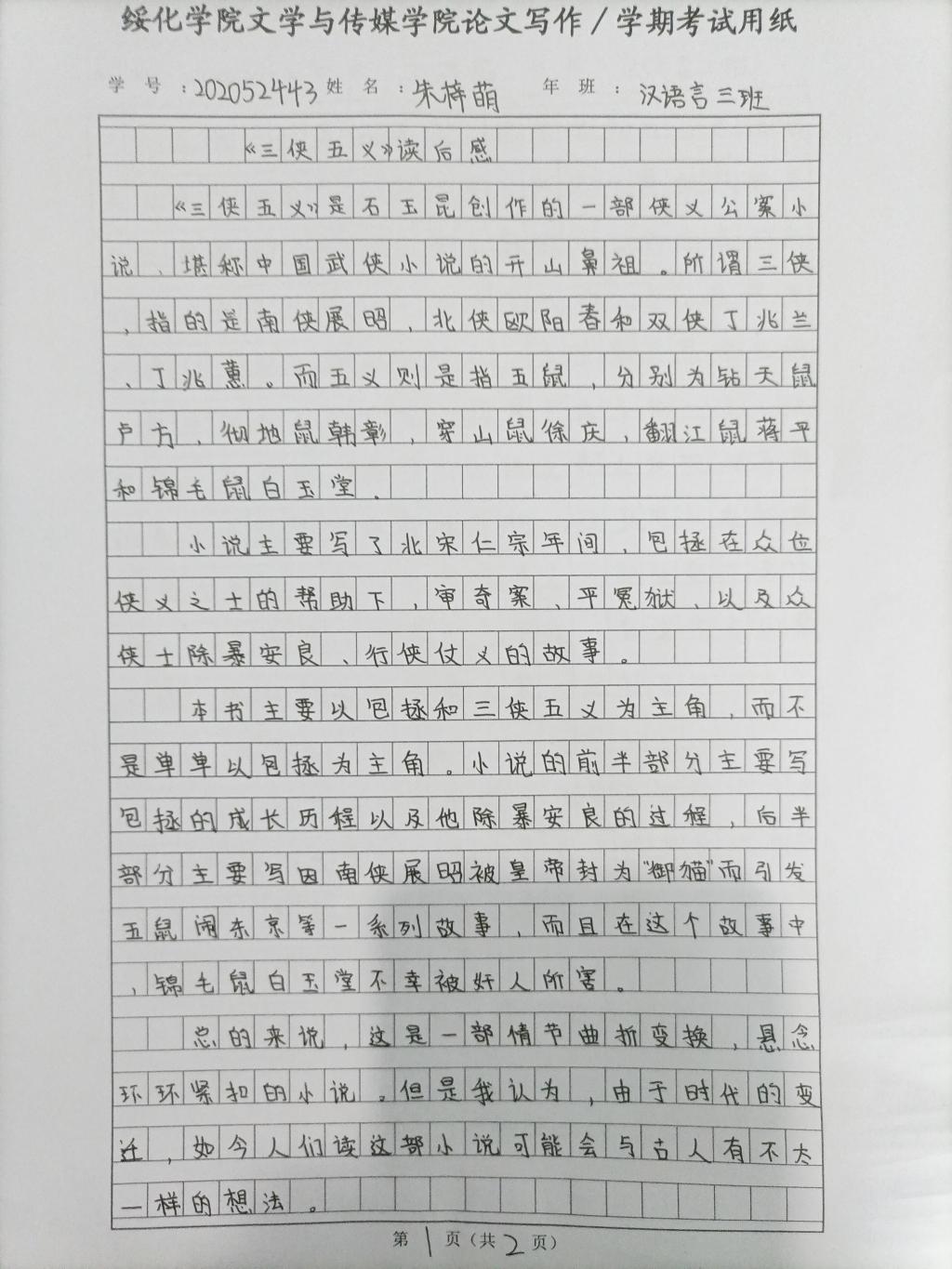 2020级汉语言文学三班朱梓萌