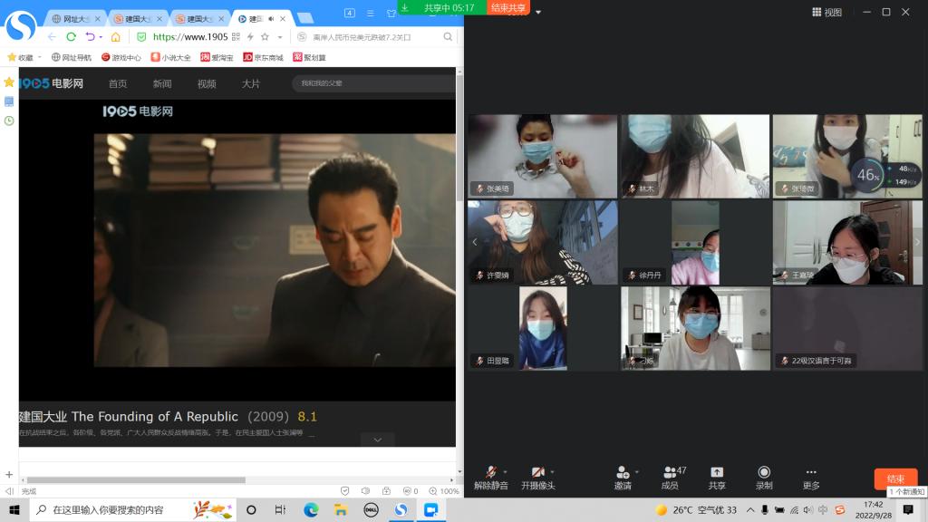 活动开始时,各班团支书首先带领同学们共唱国歌,用激情的歌声表达对祖国的热爱,树立民族自豪感。随后通过观看经典红色电影向同学们传递革命精神,让同学们铭记历史,不忘初心,激发同学们的爱国热忱。活动结束后,各班组织同学们为祖国母亲书写祝福语并录制祝福视频,向祖国母亲表达真挚的祝福。