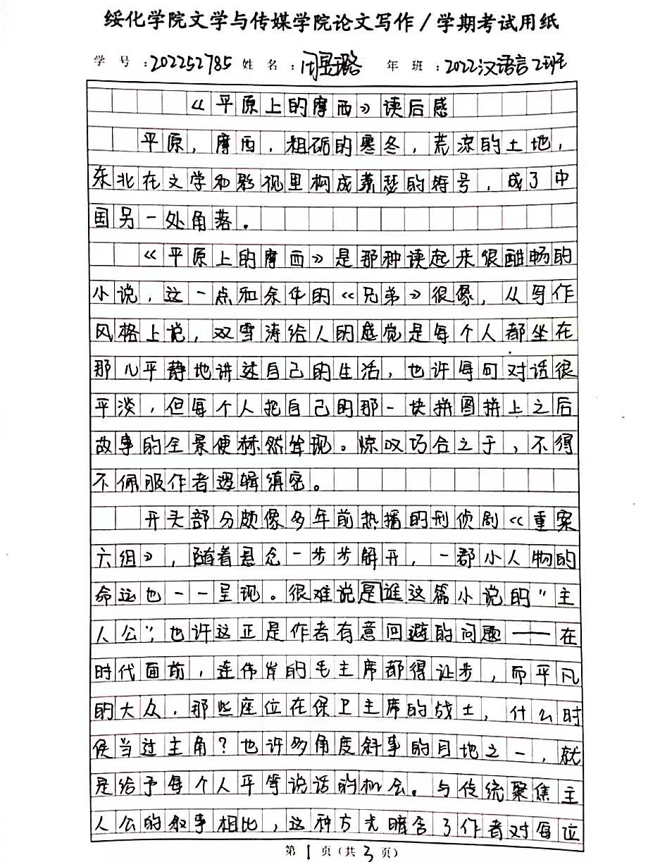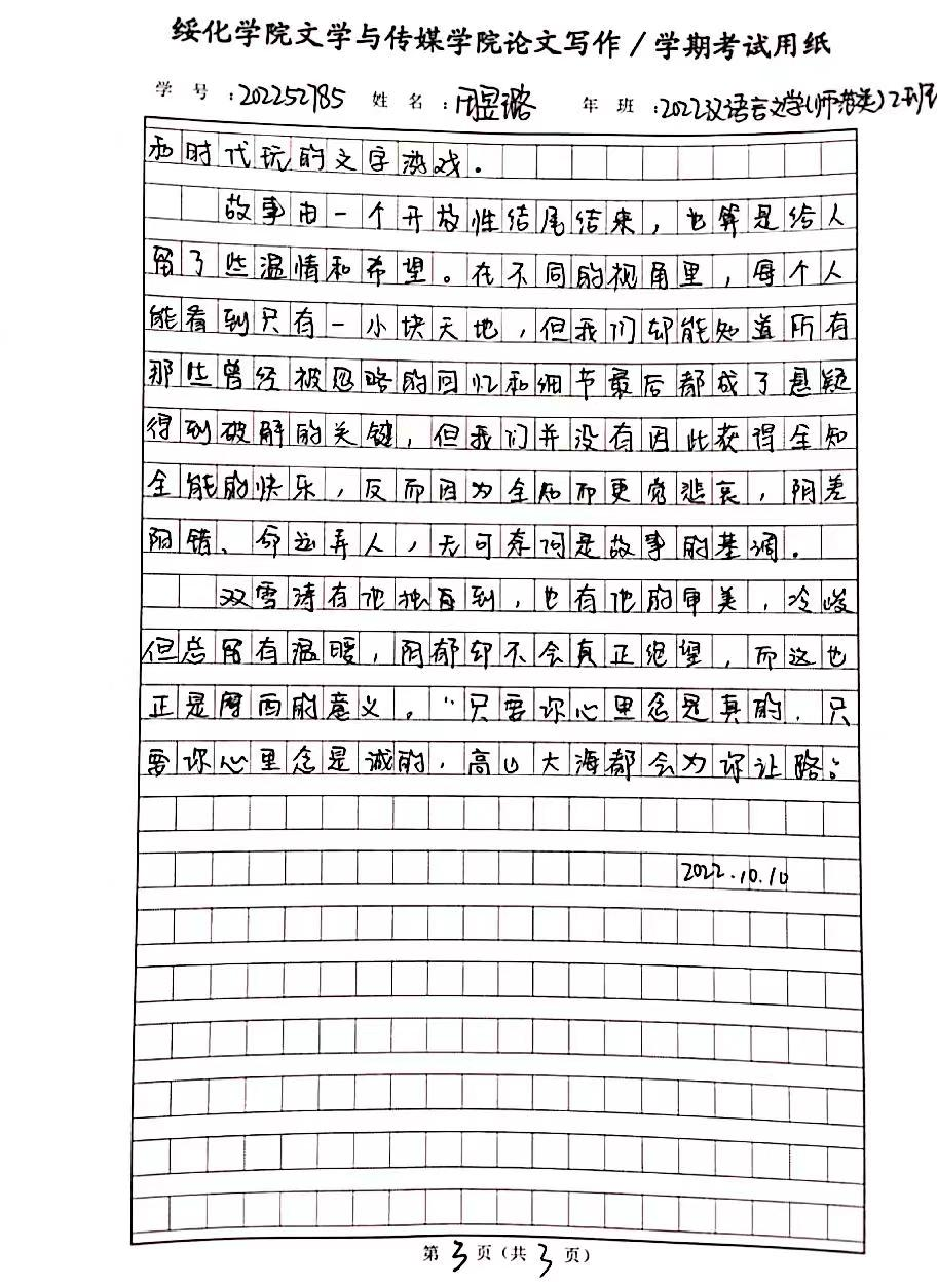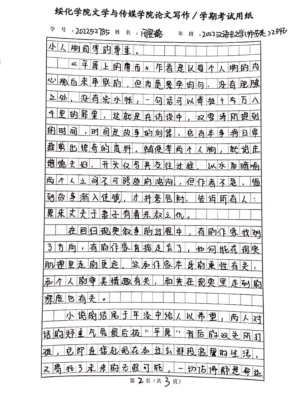 2022级汉语言文学二班田昱璐