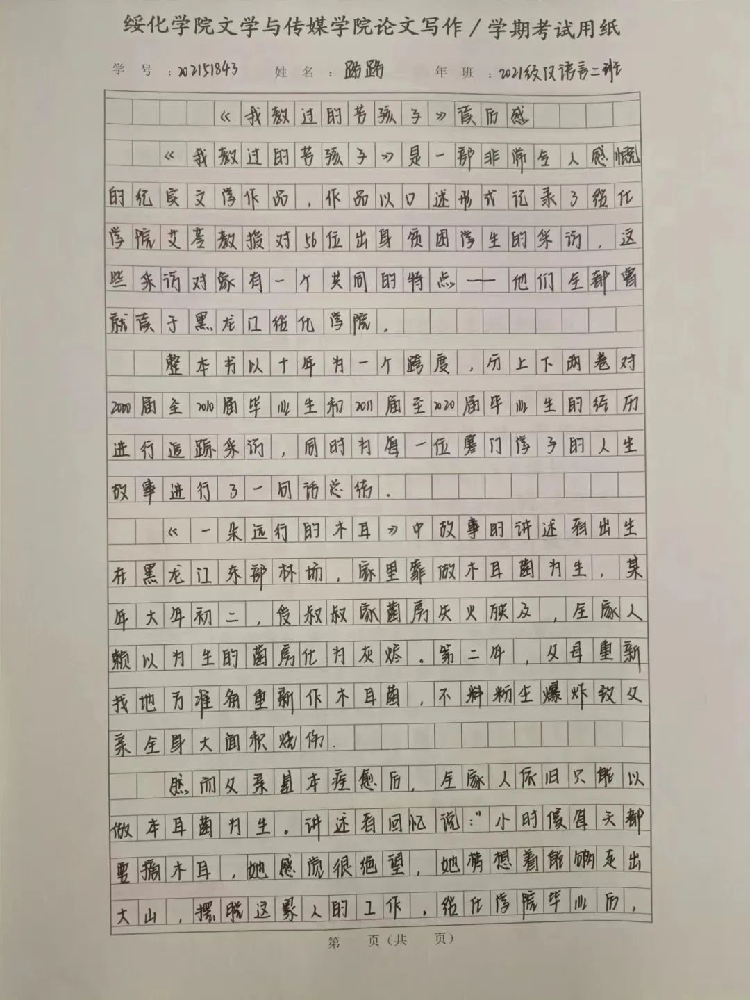 2021级汉语言二班李莜