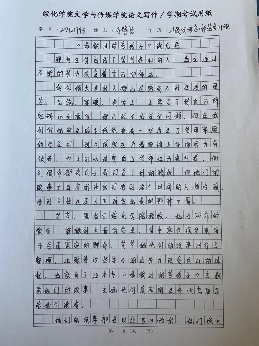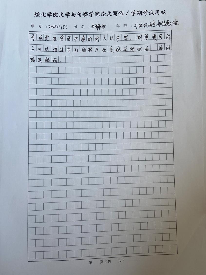 2021级汉语言一班马静怡