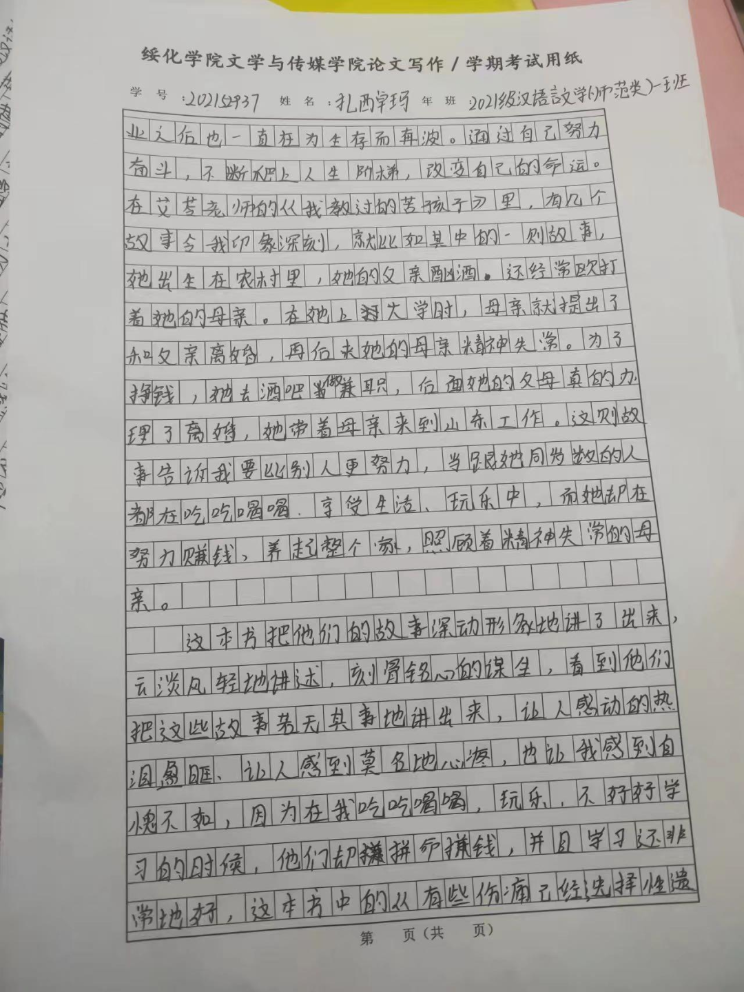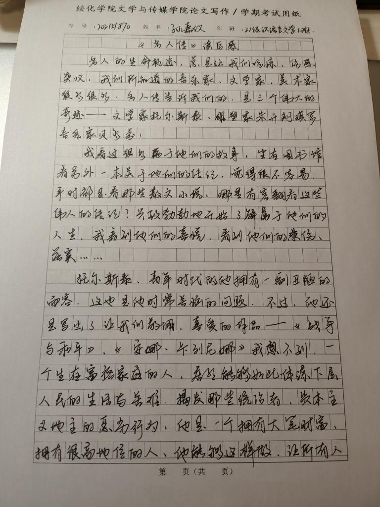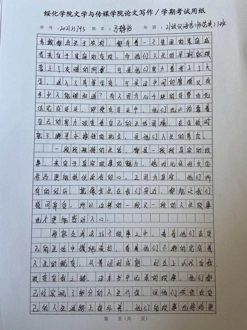 2021级汉语言一班孙嘉仪