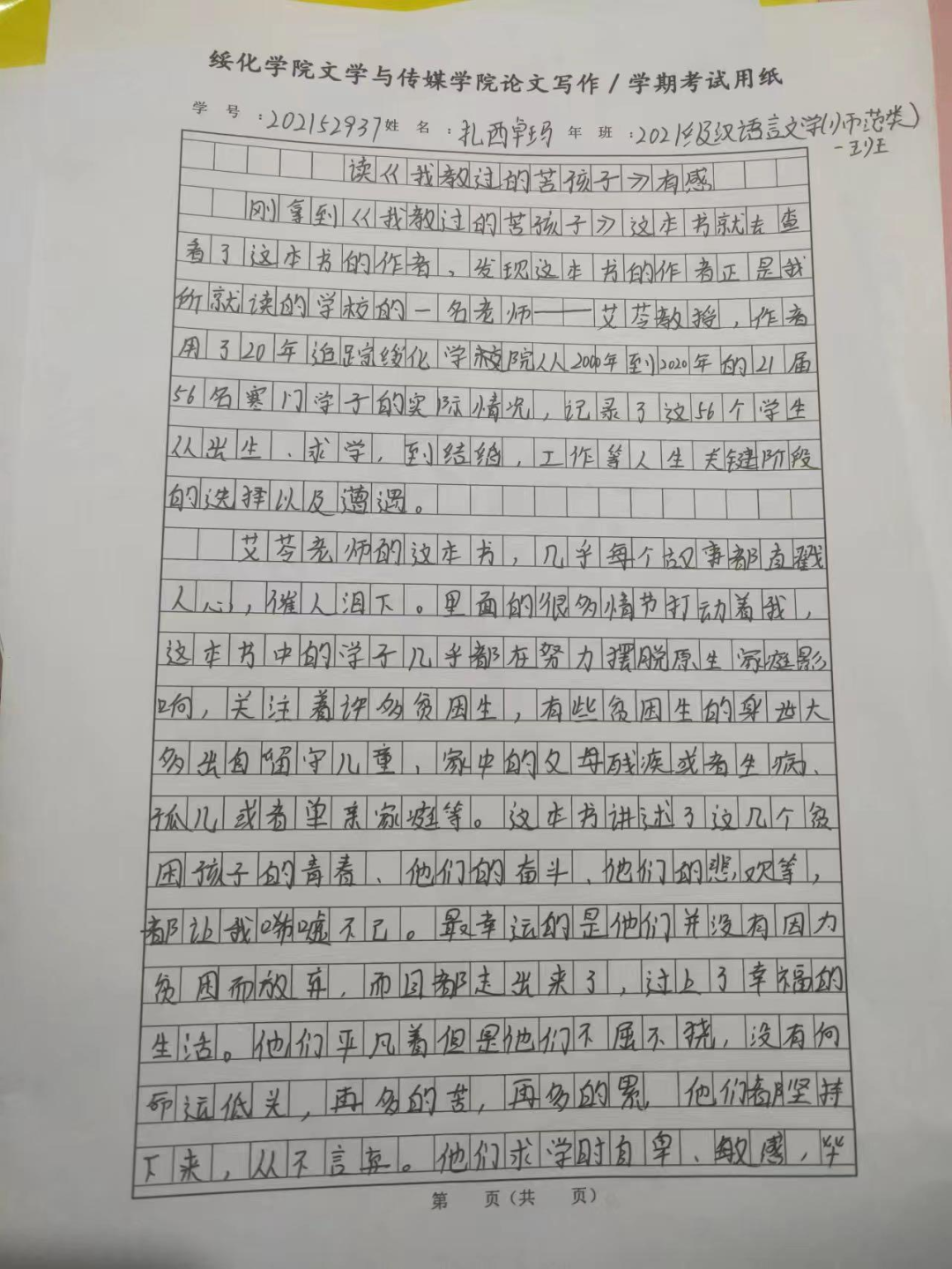 2021级汉语言一班扎西卓玛