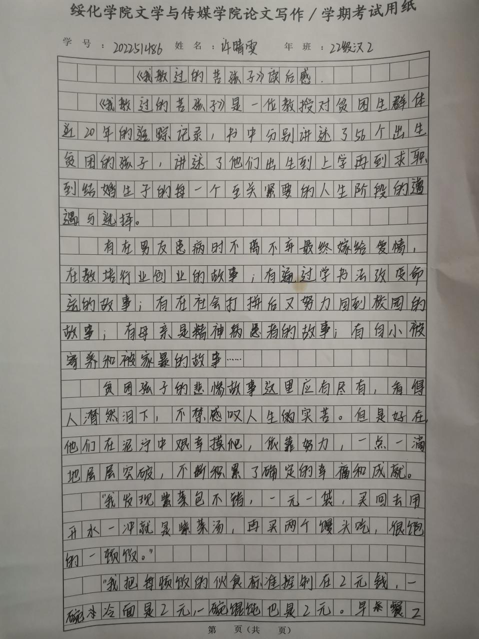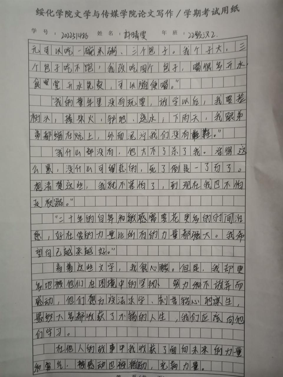 2022级汉语言二班许晴雯