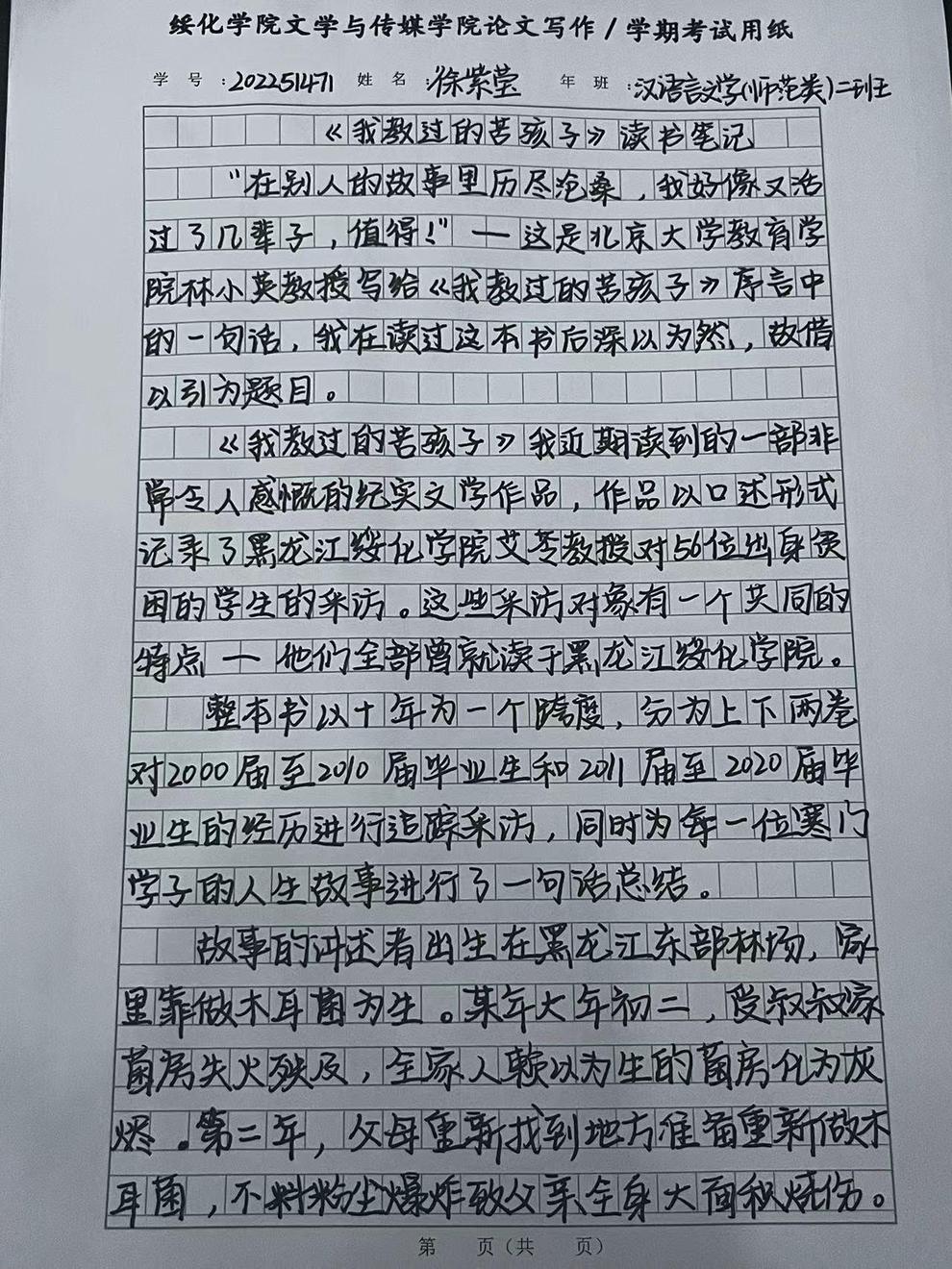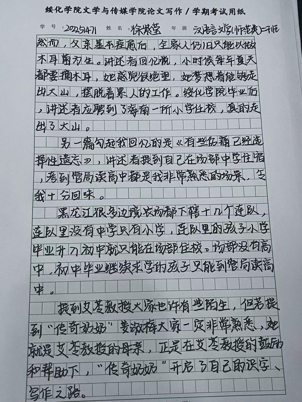 2022级汉语言二班徐紫莹