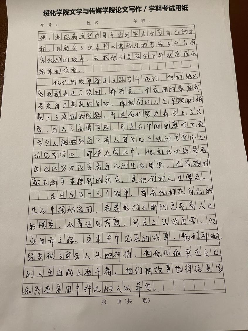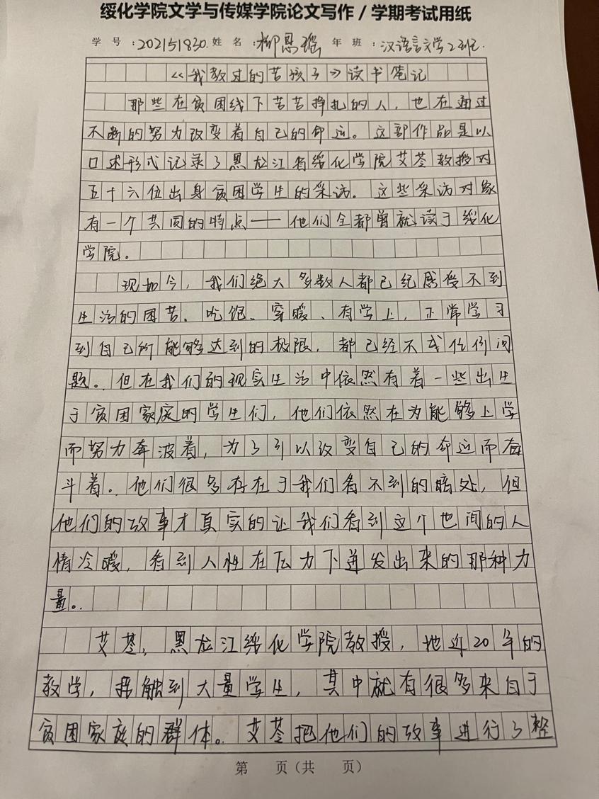 2021级汉语言二班柳思瑶