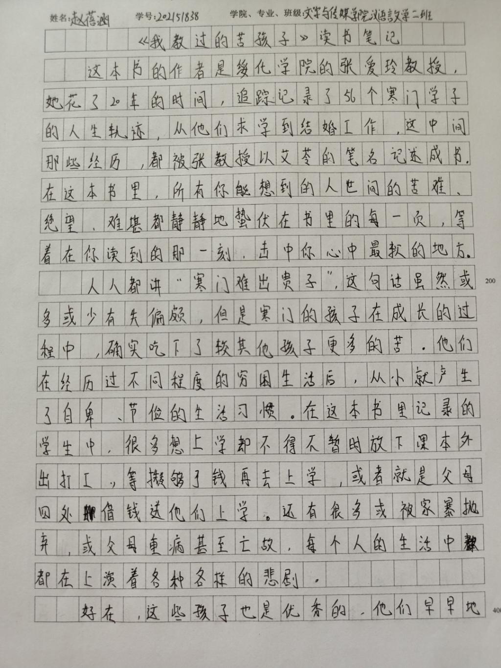 2021级汉语言二班赵蓓涵