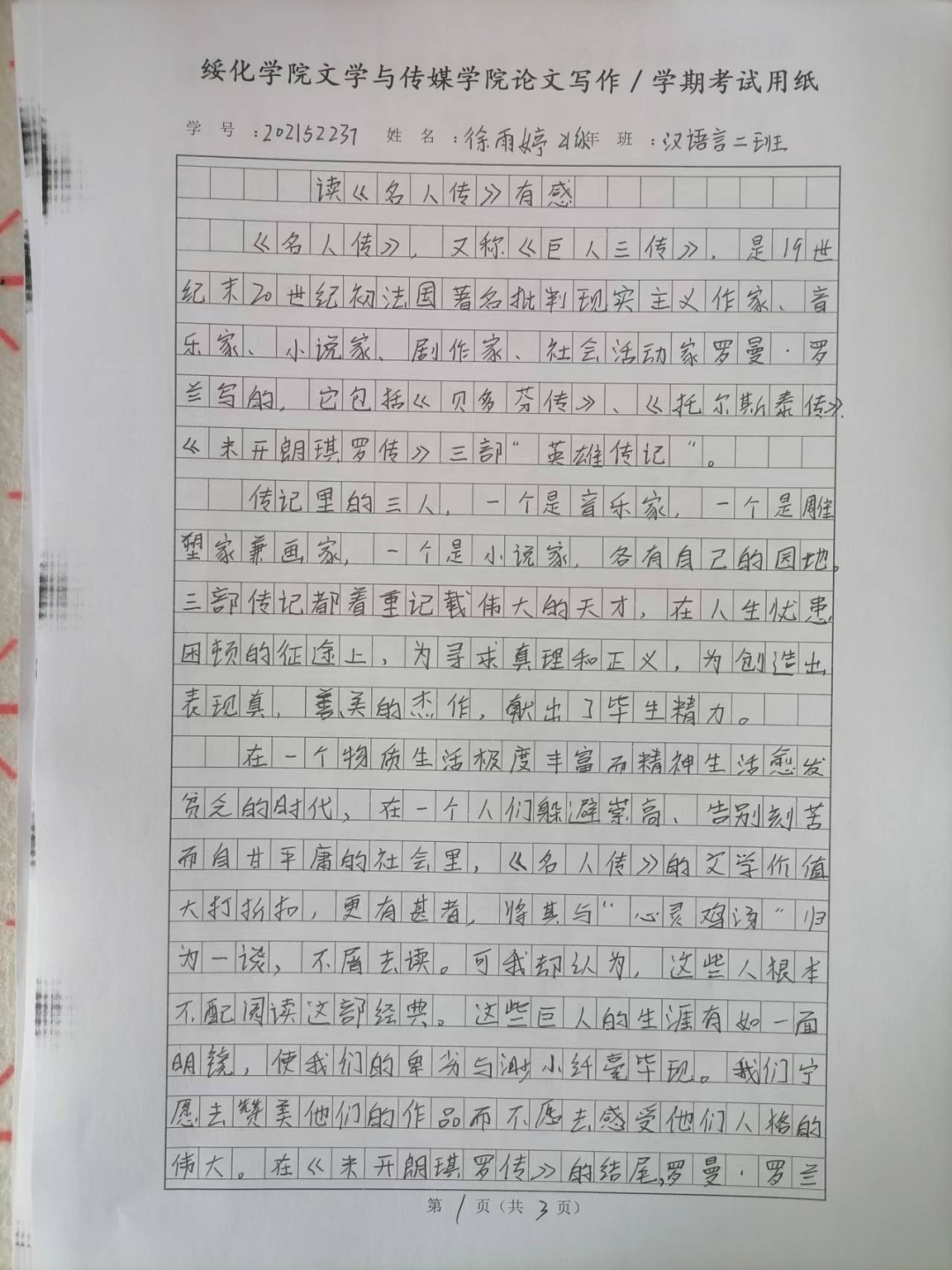 2021级汉语言二班徐雨婷