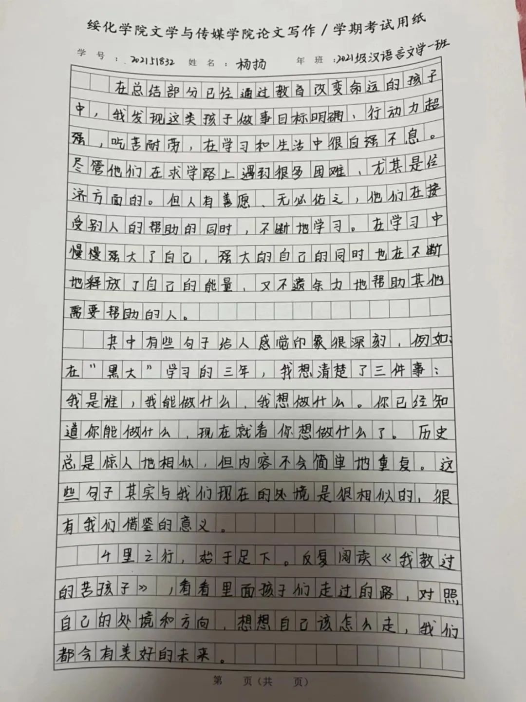 2021级汉语言一班杨扬
