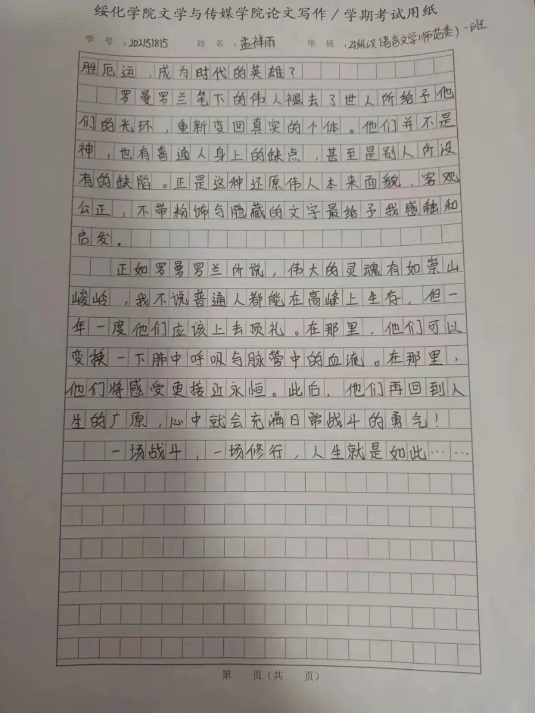 2021级汉语言一班于馨