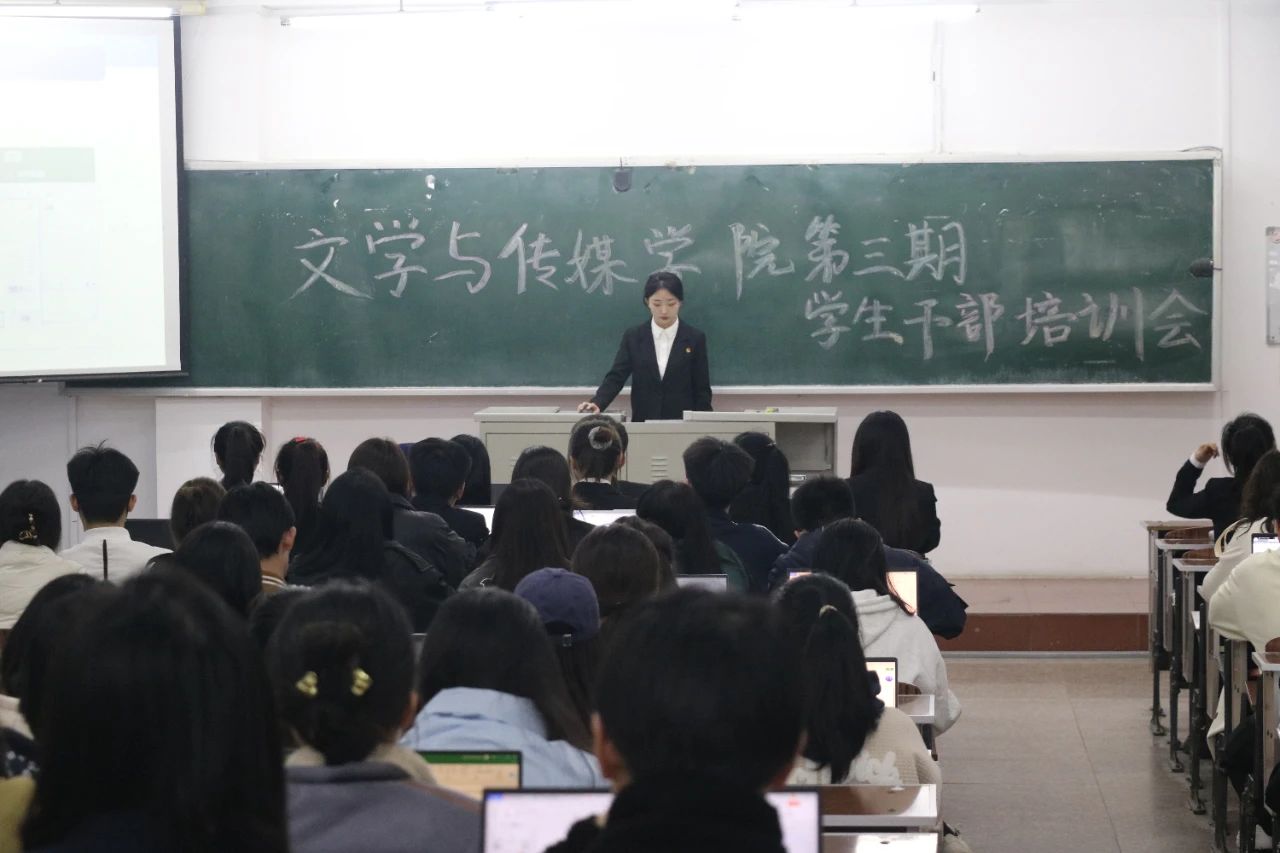 为深刻践行党的二十大精神,增强学生骨干队伍担当,弘扬务实求真的作风,全面提升学生骨干业务能力。4月21日晚Beat365官网于汇文楼624教室召开学生干部培训会,本次培训由2021级汉语言文学(师范类)二班团支书张雨彤同学主讲,学院学生会全体学生干部参加培训。