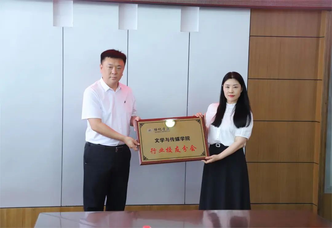 刘峰、马国齐分别为Beat365中文官方网站行业校友分会授会旗、会牌。