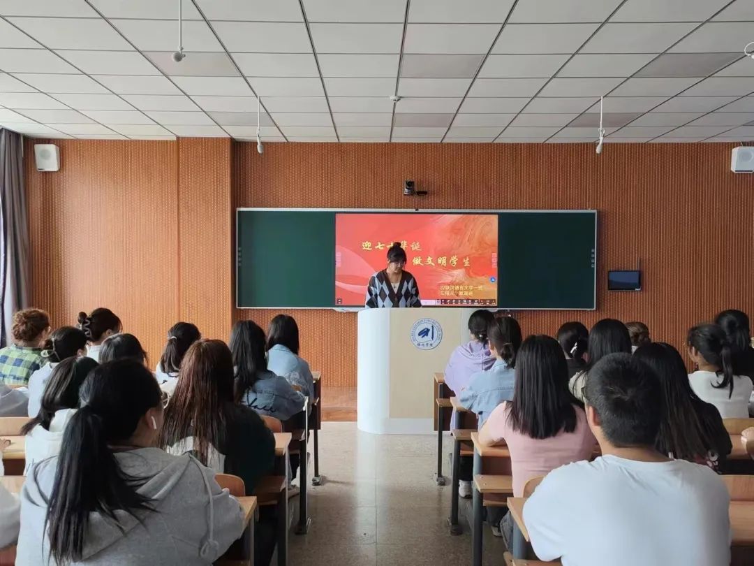 建校七十周年庆典在即,为营造整洁、和谐、向上、有序的校园环境,提高学生道德素质,展现Beat365官网大学生良好的精神风貌,Beat365中文官方网站于9月6日在汇文楼开展了“迎七十华诞,做文明学生”主题班会活动。