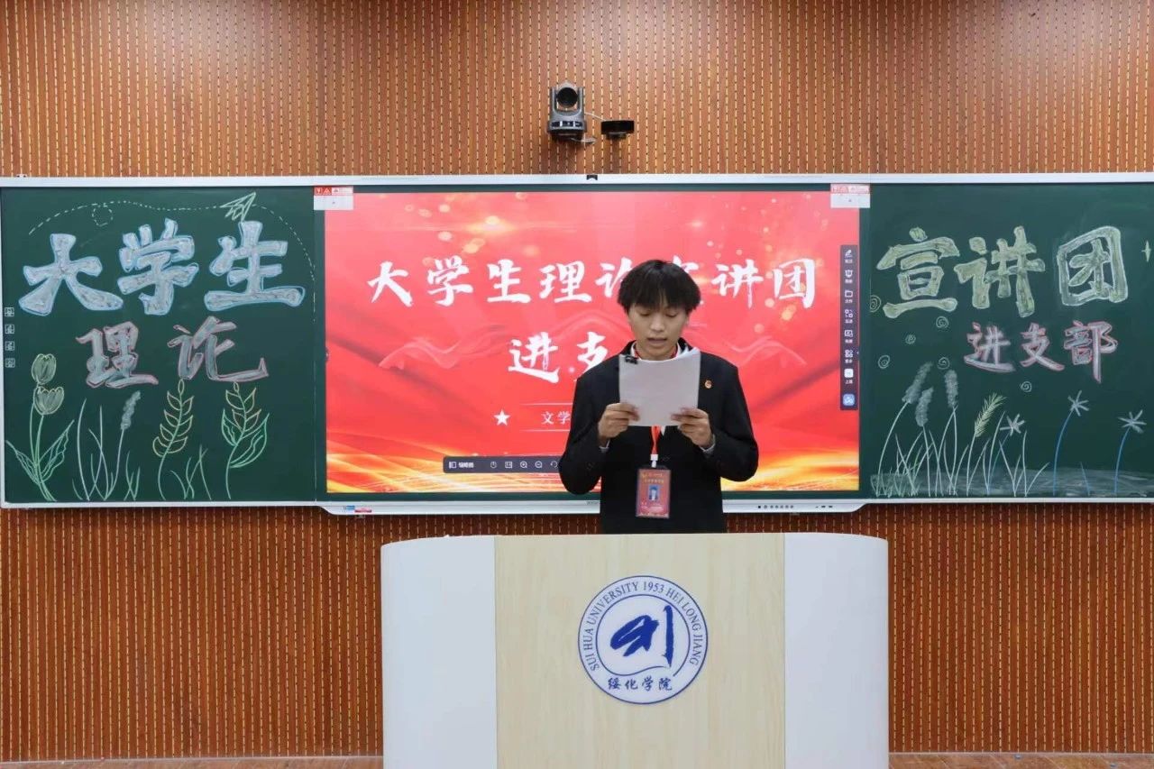 活动伊始,宣讲人孙承业向大家讲到:“时代各有不同,青春一脉相承。我们要深刻学习领会习近平新时代中国特色社会主义思想的理论精髓,掌握科学方法,增强理性认同、实践认同和情感认同!”宣讲后,同学们纷纷表达心声,自豪之情溢于言表。本次大学生理论宣讲团进支部活动让同学们明白了当社会主义事业的“垫脚石”和“脚踏实地,仰望星空”的重要性,青年更应以“踏石留印、抓铁有痕”的态度, 努力为追逐中华民族伟大复兴的中国梦而不懈奋斗。
