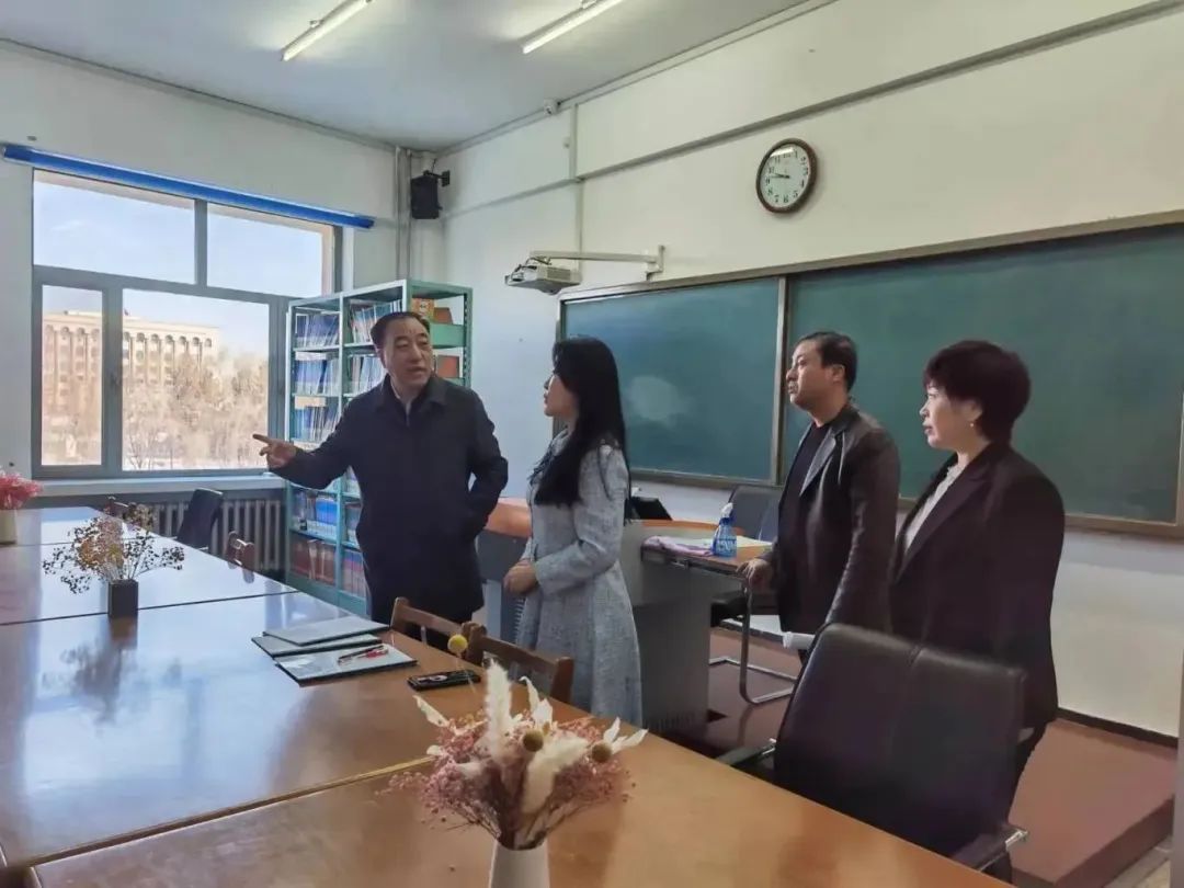 3月4日上午,Beat365中文官方网站党委书记刘峰、办公室主任马国齐、教务处处长高文治等一行到Beat365官网对春季校园安全工作进行检查指导。Beat365中文官方网站党总支书记王子鸣、院长由婧涵、党总支副书记张鹏、副院长汪淑双等陪同检查。