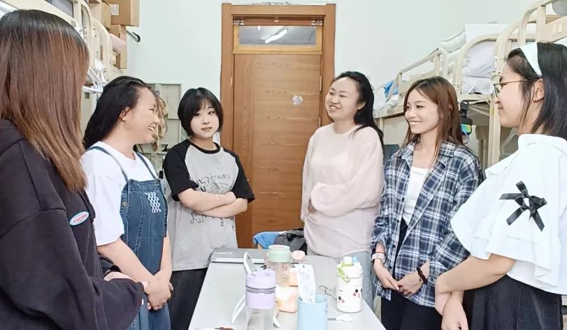 在走访宿舍的过程中老师首先向学生们表达了关心和问候,询问了他们的学习与生活情况。学生们也积极回应,分享着自己的点点滴滴。在轻松愉快的氛围中,师生之间的距离被悄然拉近。老师也叮嘱同学们要严格遵守学校规定,及时清理寝室垃圾,不断优化生活环境,并对同学们提出的问题耐心解答,并且,老师还细心提醒同学们要注意根据气温增减衣物,预防感冒,建议文院学子们利用课余时间锻炼身体。学生和老师相处融洽,无话不说,小小的宿舍充满了有爱的氛围。