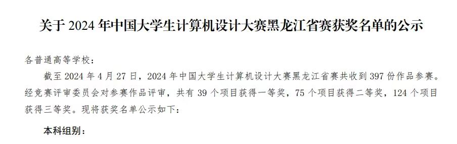 设计大赛黑龙江省赛中获奖