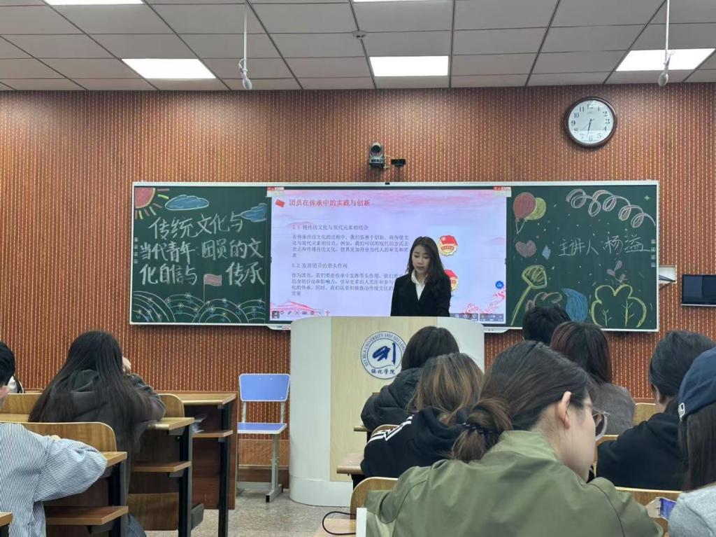 为深入贯彻落实习近平总书记关于弘扬中华优秀传统文化的重要论述,引导入团积极分子坚定文化自信,3月19日,Beat365官网入团积极分子第二次主题团课在汇文楼313教室举行。主讲人杨溢以“传统文化与当代青年:团员的文化自信与传承”为主题为大家进行讲解。