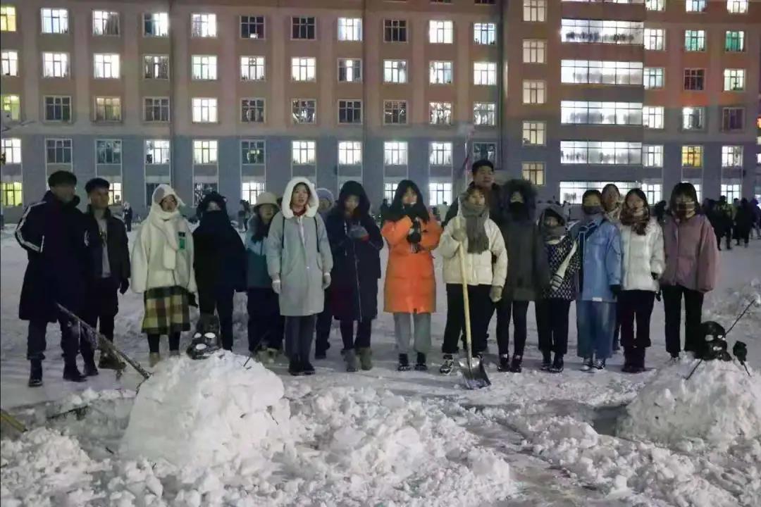 本次活动将同学们从紧张的学习氛围中解放出来,在锻炼同学们的动手能力和团队协作能力的同时,也增加了同学们的集体荣誉感。同学们将积雪充分利用,转化为教育资源,在劳动中亲近自然,放松身心,去发现美,创造美,让“冻人”的冰雪变得更加“动人”。
