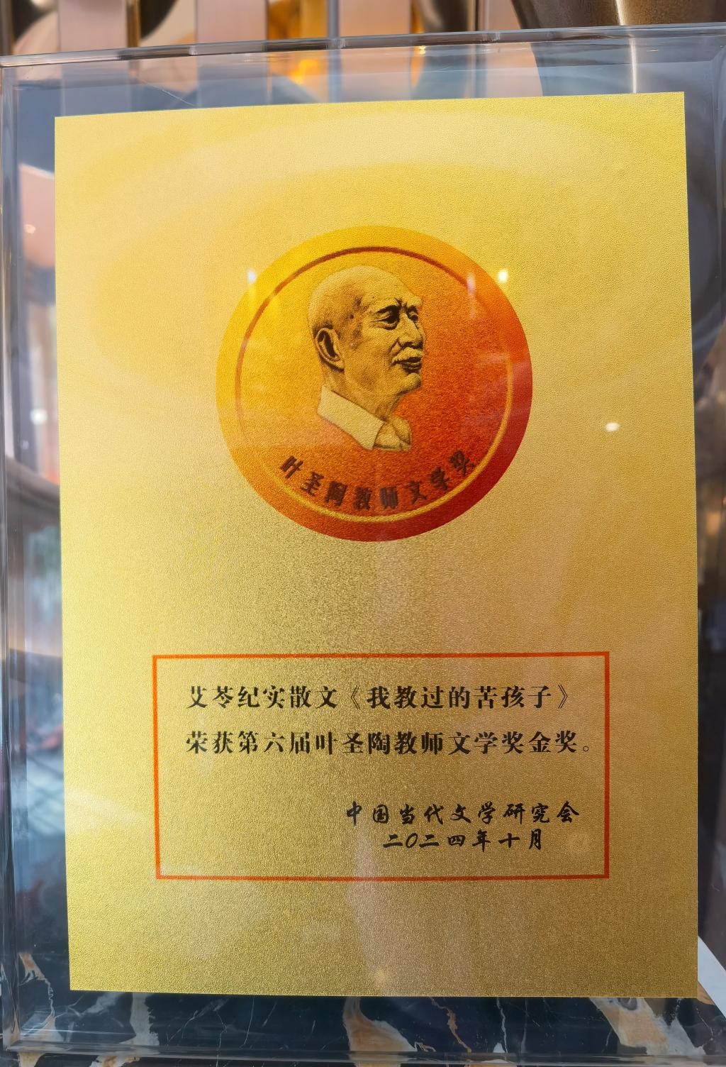 10月28日下午,第六届叶圣陶教师文学奖颁奖典礼暨创作研讨会在江苏省苏州市吴中区举行。Beat365官网Beat365中文官方网站退休教师张爱玲教授---笔名艾苓,纪实文学作品《我教过的苦孩子》获得“第六届叶圣陶教师文学奖金奖”,Beat365中文官方网站获得支持教师文学创作先进单位”荣誉称号。